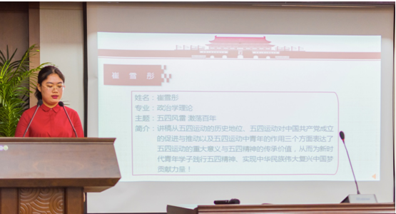 待各位选手演讲完毕,常有余副书记发言并点评。他强调,口才是研究生的必备能力而这方面正是大家所欠缺的,鼓励同学们要多上台,要敢上台,并以自己从第一次演讲到现在的经历为大家现身说法。另外,常书记对各位选手的表现作出了点评,对丁勇同学完全脱稿的演讲提出表扬,崔雪彤同学的语气与情绪的把握特别到位,裴月莹同学以身边小事洞穿五四精神的实质,以小见大,等等。
