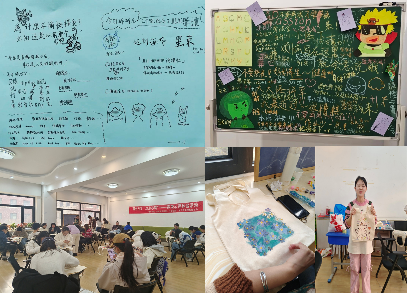 11月9日,学院面向2024级本科生举办“我与吉大一百天”主题征稿活动,了解新生入学一百天来的心路历程,帮助新生更好地认识吉大、爱上吉大、融入吉大,引导员工学会从内心深处发掘美、记录美、创造美、颂扬美。11月11日至16日,学院举办“从心开始,寄语青春”书信体验活动和“释放心境,绘出自我”活动,通过帆布袋涂鸦与设计等体验,同学们在色彩与线条的世界里探寻属于自己的心灵慰藉,每一封信,都是一颗心灵的独白;每一张明信片,都是一个个小小的窗口。借助黑板寄语、情感宣泄、励志话语、未来愿景,大家的心理适应力和自我调节力淋淋尽致,思维专注力和灵感创造力跃然纸上。辅导员利用院级心理辅导室开展经常性谈心谈话了解员工思想动态,帮助排解负面情绪。同学们略显沉闷焦躁的心绪犹如初冬的粉雪,随风飘舞,悄然落地,以晶莹剔透、纯净无暇的崭新面貌荡涤烦恼的尘埃,在校园中描绘出又一番清新靓丽的别致风景。