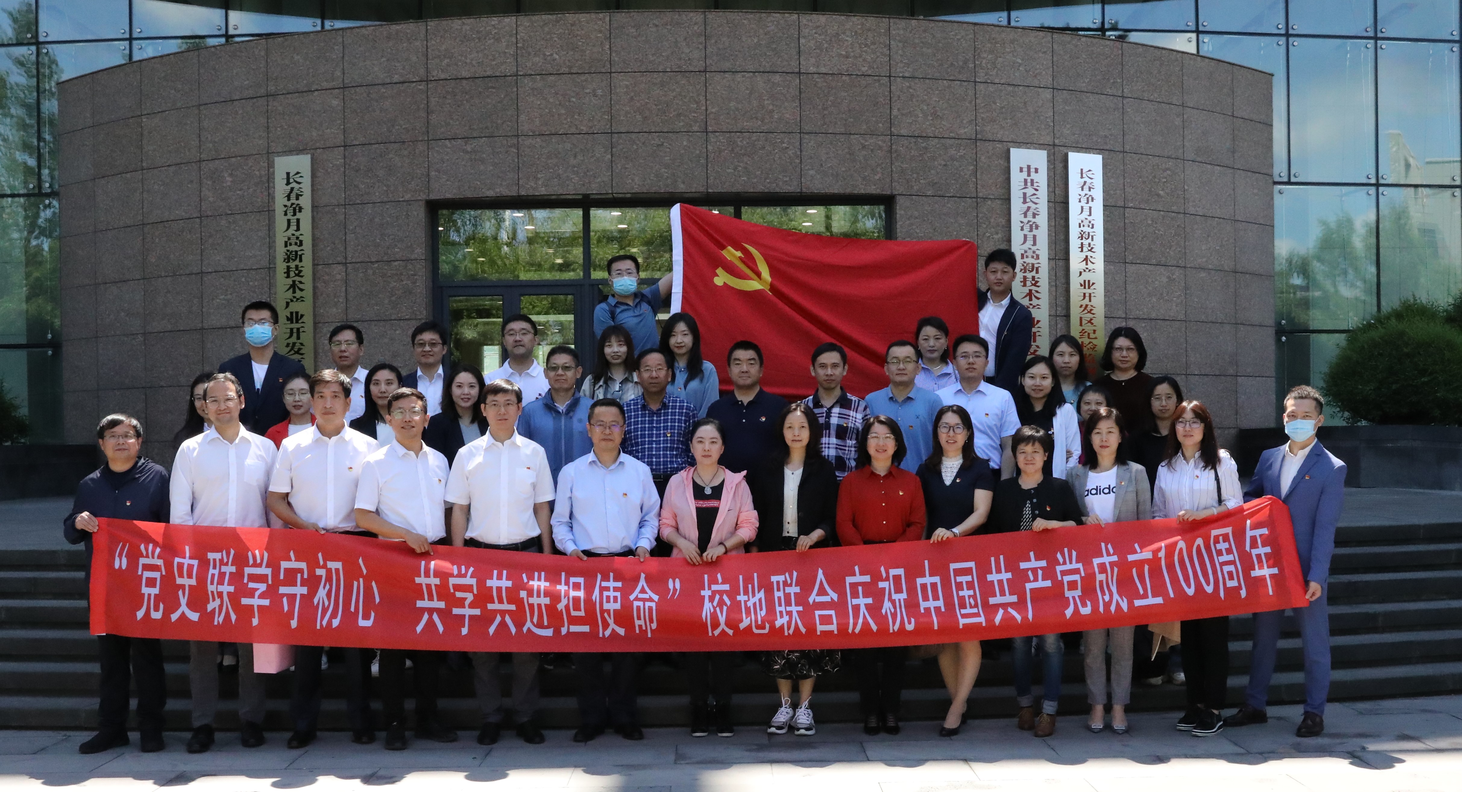 为持续深入开展党史学习教育,全面落实学校关于庆祝建党百年之“三走进、三服务、三融合”活动要求,校部机关党委组织部教工党支部、公司党委机关教工党支部于6月19日,联合长春净月高新技术产业开发区商务和国际合作局党支部、长春净月高新技术产业开发区博硕街道永安社区党支部共同开展“党史联学守初心 共学共进担使命”校地共庆中国共产党成立100周年系列活动。公司党委组织部部长巩英春、机关党委书记郑爽、党委组织部正处级组织员张蓼红、公司党委书记马景惠及所在支部全体党员参加活动。校机关党史学习教育指导组组长蒲韶华、副组长李郎达应邀参加。